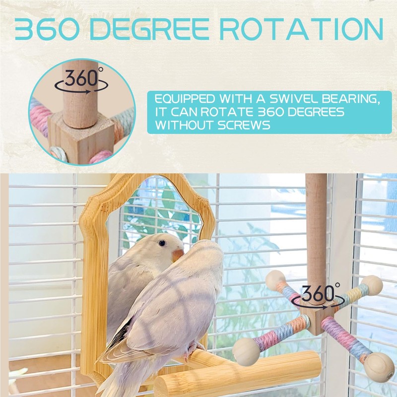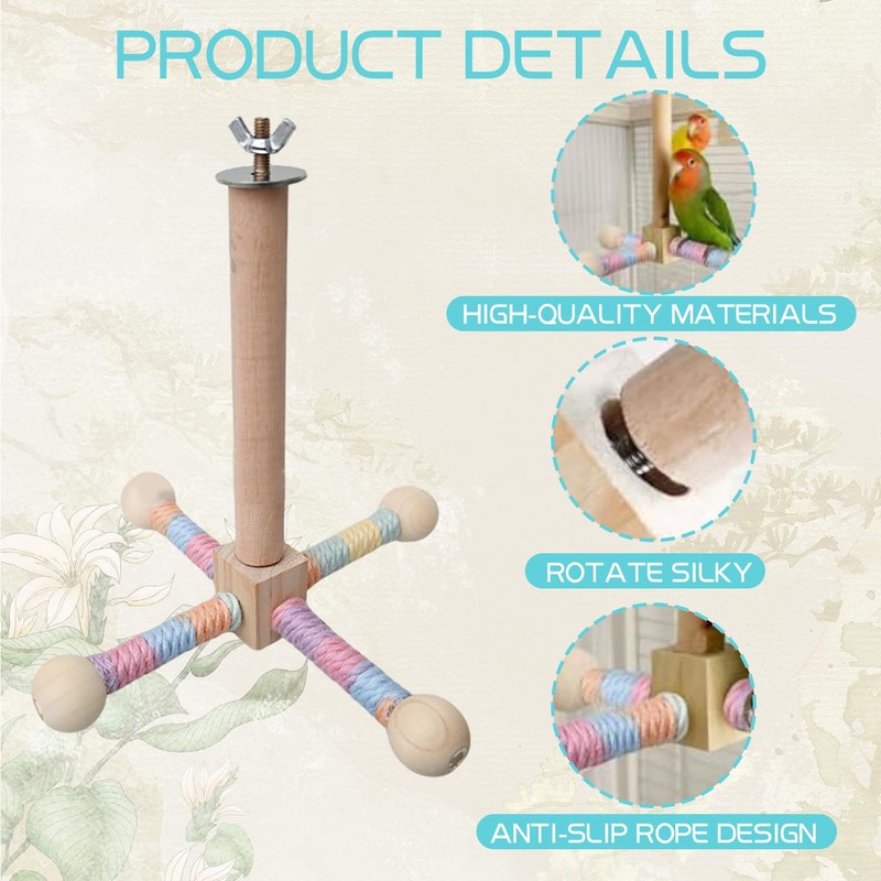 - 【Spin and Play】This parrot perch can rotate 360 degrees, allowing your birds to play from every angle. Equipped with a swivel bearing, it spins smoothly without a hitch, keeping your birds entertained and active.