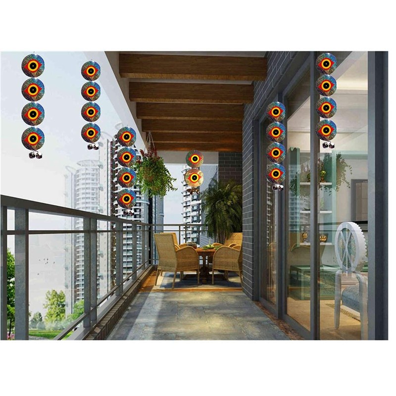dizzyBirds Repellent and Deterrent Reflective Discs **Installation, Principle And Using Result** ✔ Double-Sided Discs with 48 red eyes. ✔ The sound of 12 bells scare sparrows and pigeons away. ✔ Each pack has 4 discs, more than other competitors ✔ 360 Degrees Reflective to Keep All Birds Away. ✔ Laser reflection film makes the bird's eyes uncomfortable. ✔ Versatile and nice looking. ✔ Smooth edges for safe assembly. ✔ **Easy to hang – It is an affordable price** dizzyBirds Repellent and Deterrent Reflective Discs is a highly effective bird repellent solution. Birds hate the shiny reflective discs moving with the wind And we used woodpecker-like eyes and according to proof, the birds were very afraid of red eyes. The sound of bells scare sparrows and pigeons away. The dizzyBirds Repellent and Deterrent Reflective Discs is eco-friendly and wildlife friendly, and is harmless to birds. Made from eco-friendly material that will not harm a single feather. Solve your bird problem without harmful chemicals. 360 Degrees Reflective to Keep All Birds Away from Your House Window Garden. Made with quality PVC thick and ultra-durable material,the surface composite reflective film is not made of paper so that to ensure its durability. The scare bird away repellent discs moves in the wind, moving freely even during low speed breezes and winds, thus making it effective even on low windy days. **FEATURES** ✔ Package: Set of 6 (24pcs Discs)+48pcs eyes + with 12 Bells + 6 Strings ✔ Effective for: Pigeons, woodpeckers, ravens, crows, ducks, and most other birds. **!!Get rid of birds, safer and more natural!!**