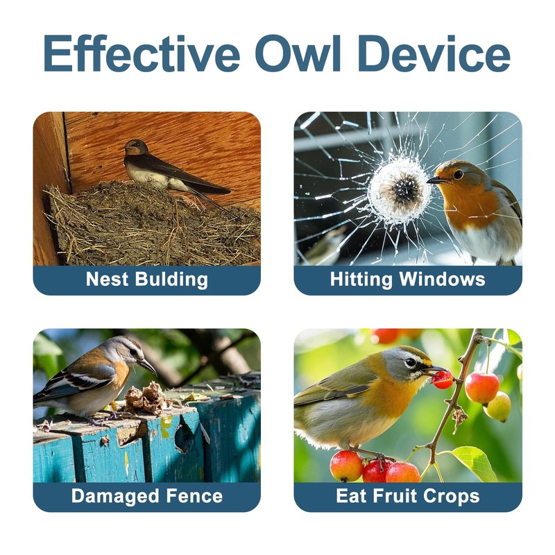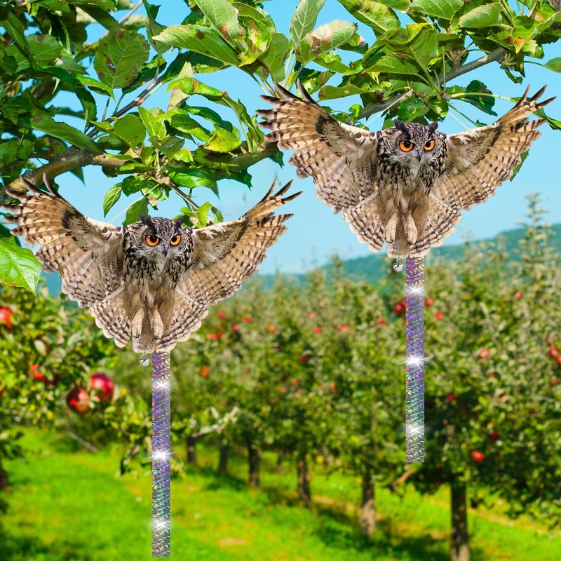 - Effective Bird Deterrent The bird deterrent is together with simulating owl shapes, utilizes wind movement and light reflections to keep birds away from your garden, yard, patio, balcony, garage.