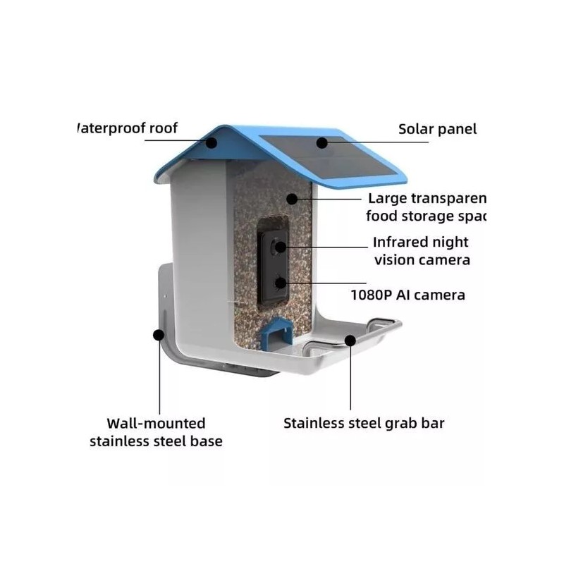 - Features: Easy Clean, Easy Refill, Seed Guard, AI Recognition, Wi-Fi, Solar Panel, Easy Drain, App Integration, Share Feature