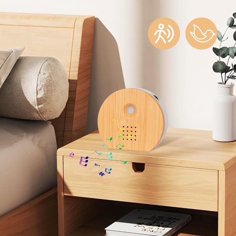 • 【Natural Design & Custom Volume Control】 Made with eco-friendly materials and a nature-inspired aesthetic, this nature sound box with motion detector features a volume control button and an ON/OFF switch. Its compactness makes it ideal for placing on shelves, tables or walls. It also includes an energy-saving feature to extend battery life.