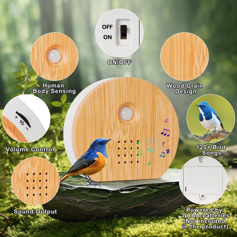 • 【Easy to use】 With a simple push of a button you can put it in a relaxing atmosphere, enjoy the soothing sounds of birdsong, without the need for constant manual adaptations; Volume can be individually adjusted via buttons on the page. Perfect for those looking for practicality and a touch of relaxation in spaces such as bathrooms, offices or entryways.