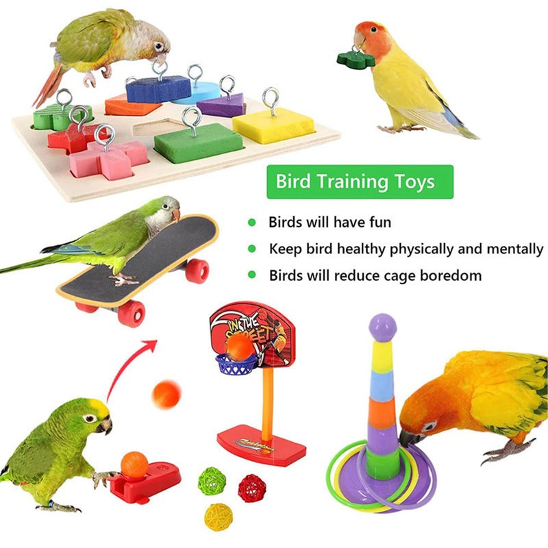 Bird Toy Parrot Toy Bird Toy Budgie Toy Cockatiel Toy Parrot Intelligence Toy with Skateboard Training Rings for Parrots, Birds, Parakeets
