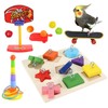 - Set includes: the set includes a wooden puzzle toy, a ball training toy, a colourful stacking ring toy, a mini skateboard toy, some toys need to be assembled by yourself.