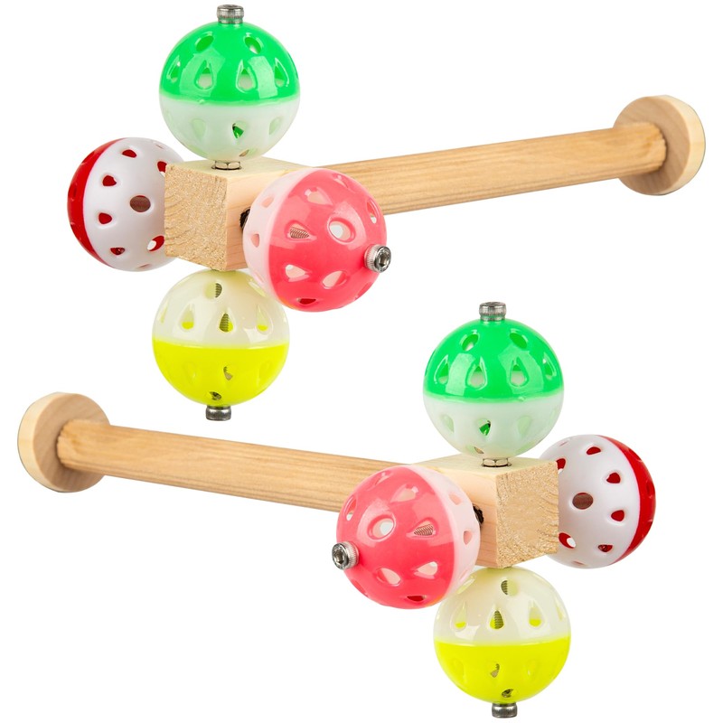 Bird Toy with Rotating Balls, Natural Wood Perch for Bird Cages, Colorful Fun Toy for Budgerigar, Parakeet, Conure, Cockatiel, Mynah, Love Birds, Finches