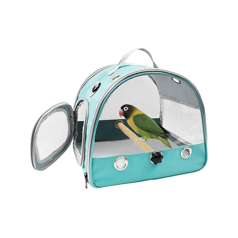 Bird Travel Carrier with Standing Perch,Lightweight Breathable Parrot Cage, Small Pet Carrier Bag with Shoulder Strap,Bird Rat Guinea Pig Squirrel Carrier (Green)