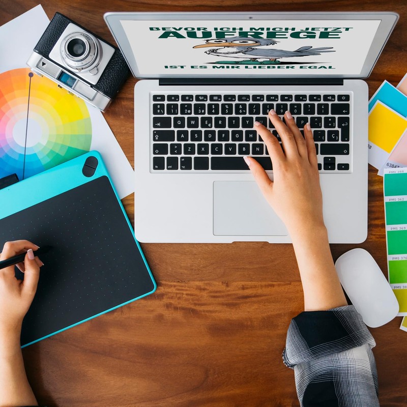 - The funny fridge magnet features an awakened cartoon bird with big eyes, a long beak and cheeky humor. With the saying "BEVOR ICH MICH JETZT AUFREGE, IST ES MIR LIEBER EGAL" it spreads a good mood. The bird wears green shoes and a chain - a real eye-catcher on a white background.