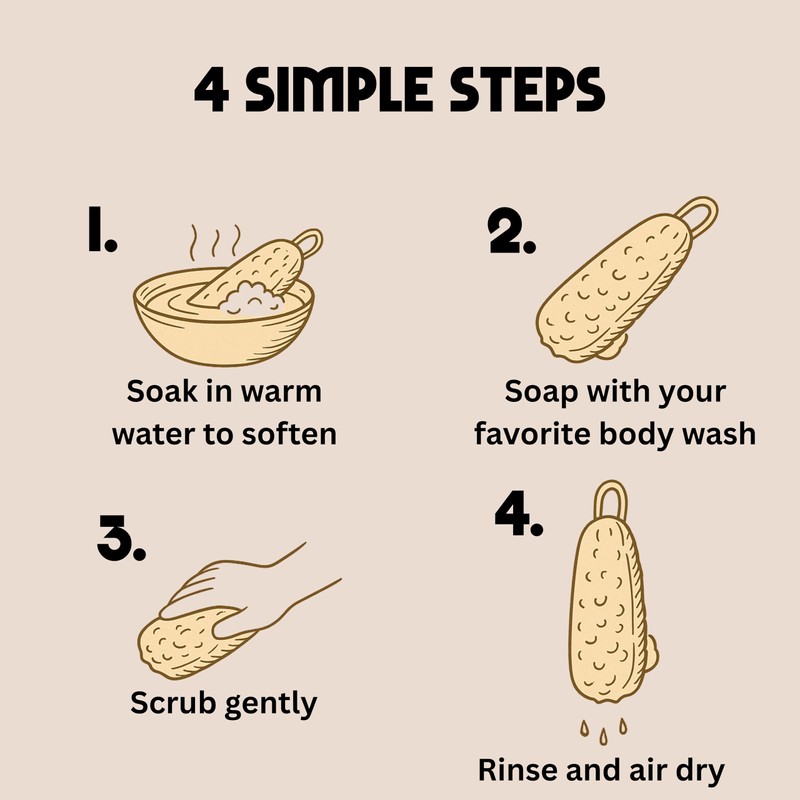- How to Use – Soak loofah in warm water to expand and soften. Gently scrub desired surface or skin. After use, rinse thoroughly and hang in a well-ventilated area to air dry.
