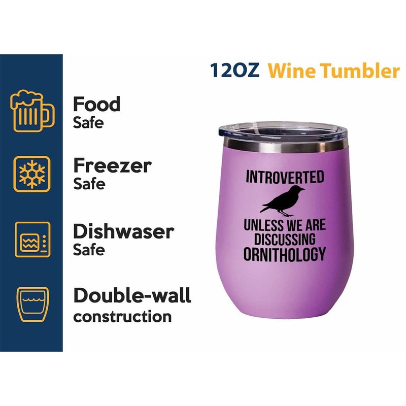 Birding Pink Edition Wine Tumbler 12oz - Introverted unless - Bird Feeder Backyard Birdwatcher Gifts Birding Bird Lover