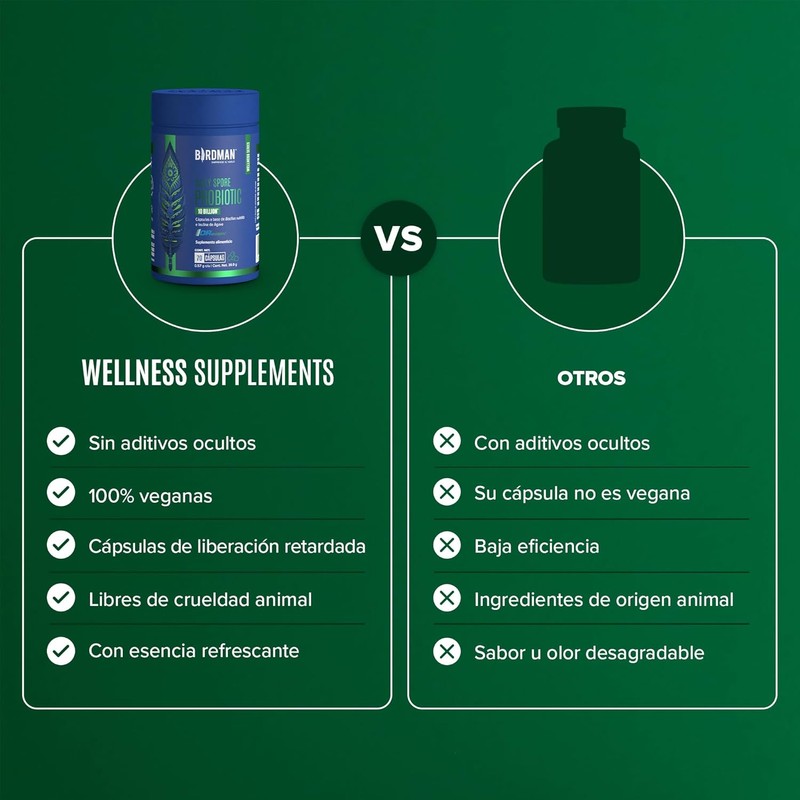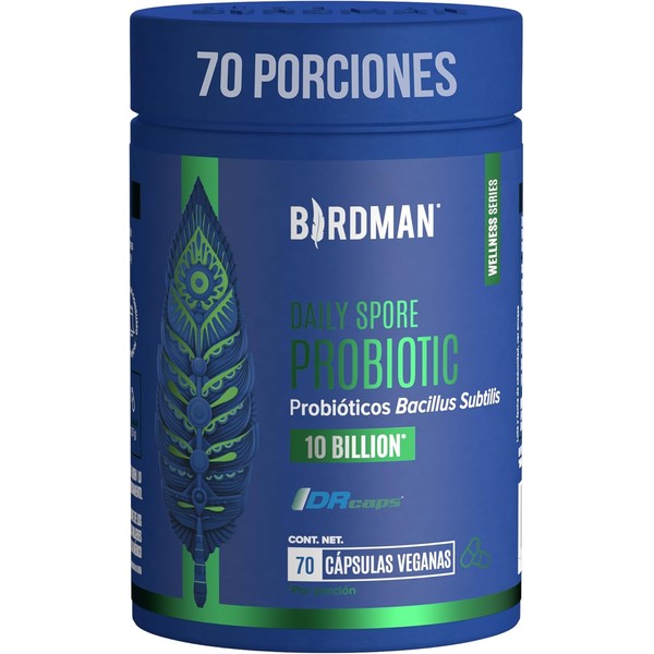 Birdman Daily Spore Probiotic | Probióticos con 10 Billones de UFC | Fórmula de Liberación Retardada y Sin Aditivos | Cápsula Vegana | Suplemento Alimenticio | 70 Porciones | 70 Cápsulas