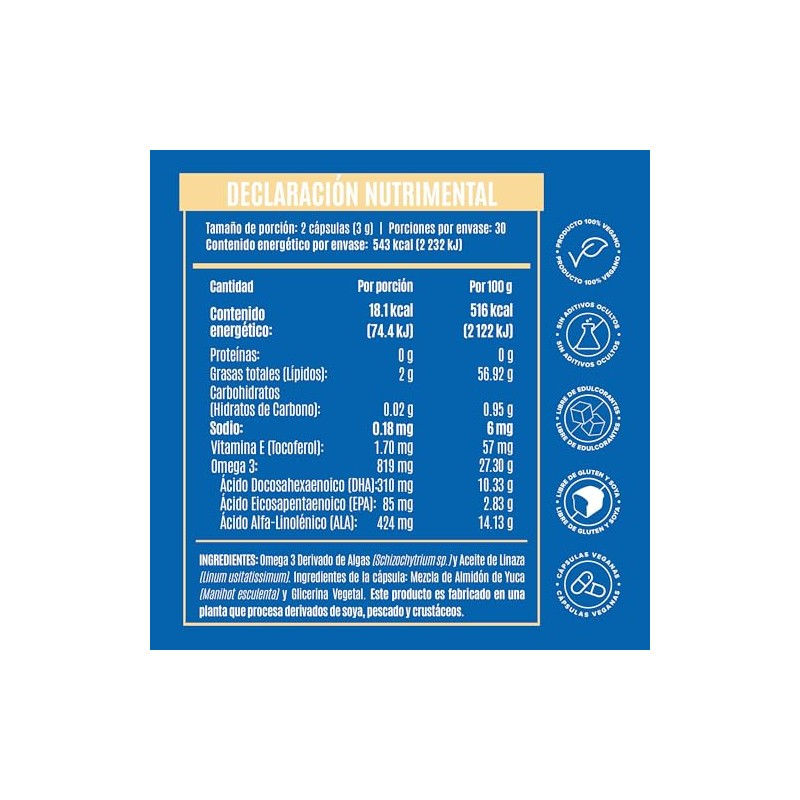 🌟 ⭐ Birdman Full Spectrum Omega 3 a base de Algas y Aceite de Linaza | Fórmula 100% Vegetal y Sostenible | Libre de Contaminantes y Aditivos | Suplemento Alimenticio | 30 Porciones | 60 Cápsulas ⭐ 🌟