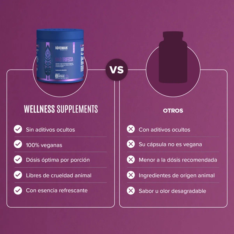 Birdman Mag Trifecta 270 mg Citrato, Glicinato y Treonato de Magnesio Sin Aditivos 60 Porciones 180 Cpsulas