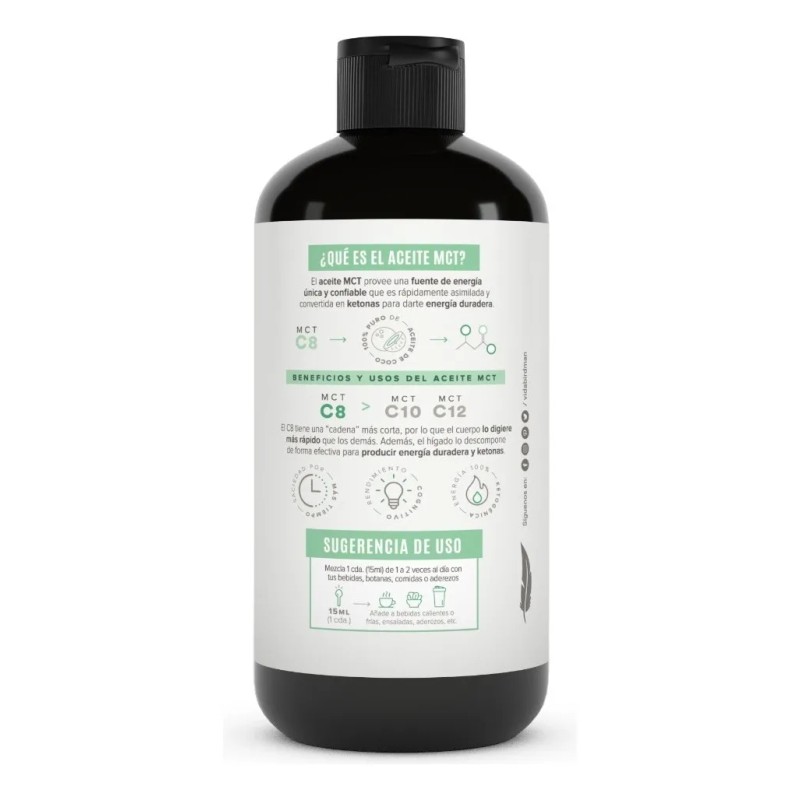 Gracias a su rápida conversión en cetonas, este MCT Oil proporciona un impulso de energía limpio y sostenido, combatiendo la fatiga y mejorando el enfoque mental. Es un aliado perfecto para dietas bajas en carbohidratos, apoyando el control de peso y un metabolismo saludable. Además, sus propiedades naturales pueden contribuir a tus defensas. Su formato sin sabor te permite integrarlo sin esfuerzo en tu café, batidos, aderezos o cualquier receta, sin alterar el gusto. ¡Siente la diferencia en tu vitalidad y rendimiento diario con Birdman MCT Oil C8!