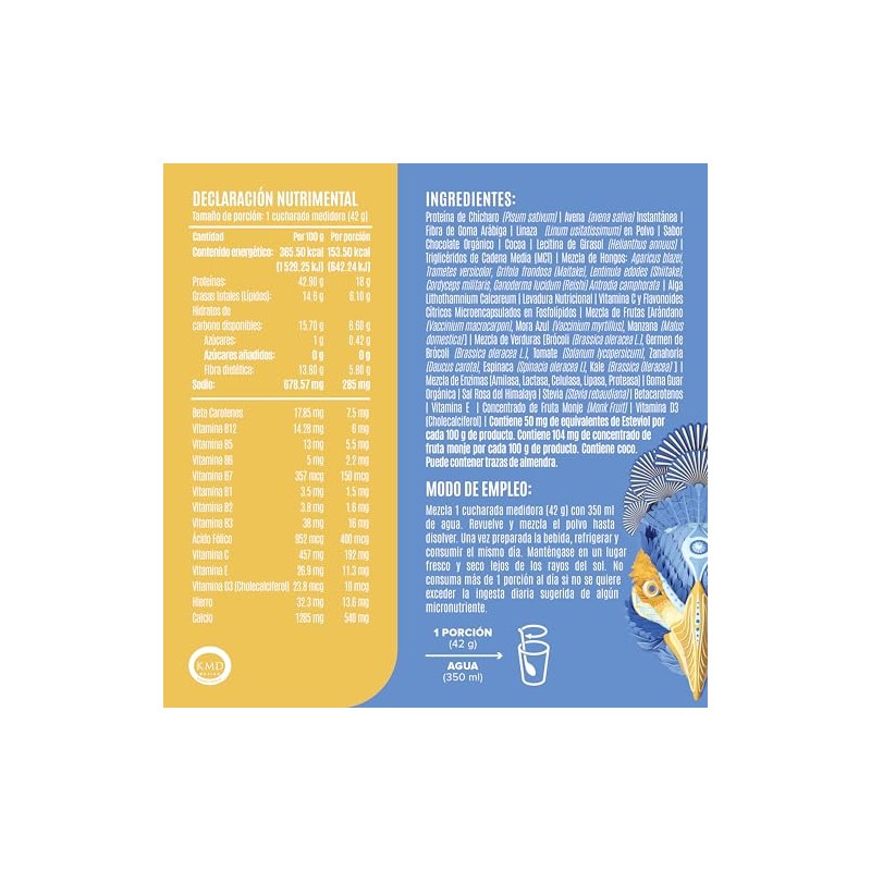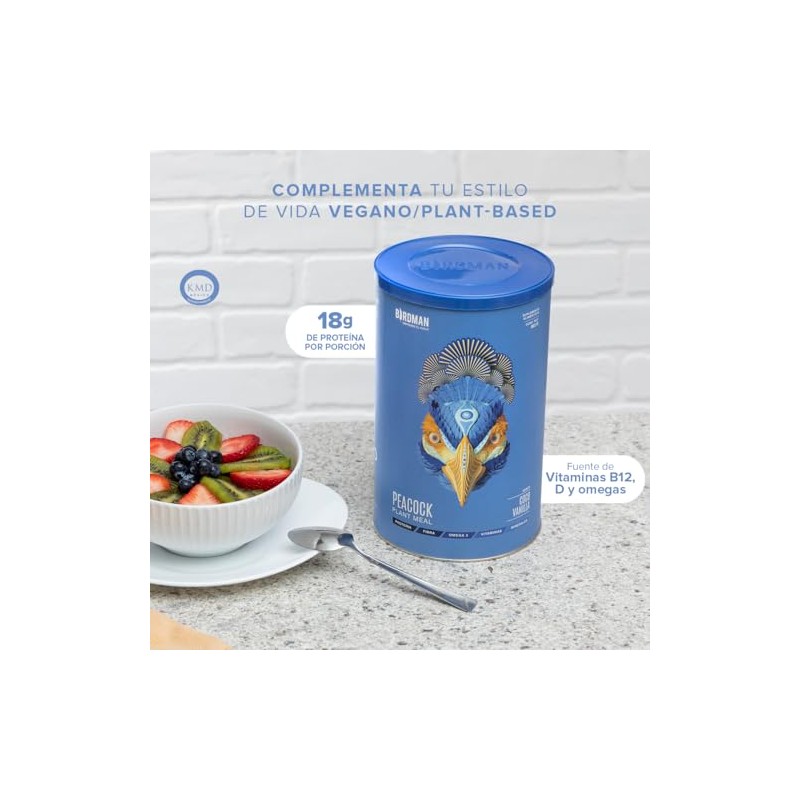 BIRDMAN Peacock Protena Vegana Todo en Uno 11 Vitaminas Omega 3 Fibra Enzimas Digestivas Adaptgenos MCT Oil Superalimentos Zinc Sin Gluten...