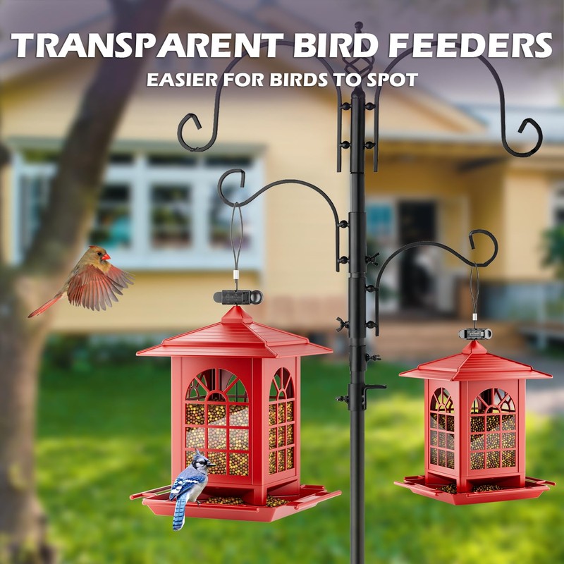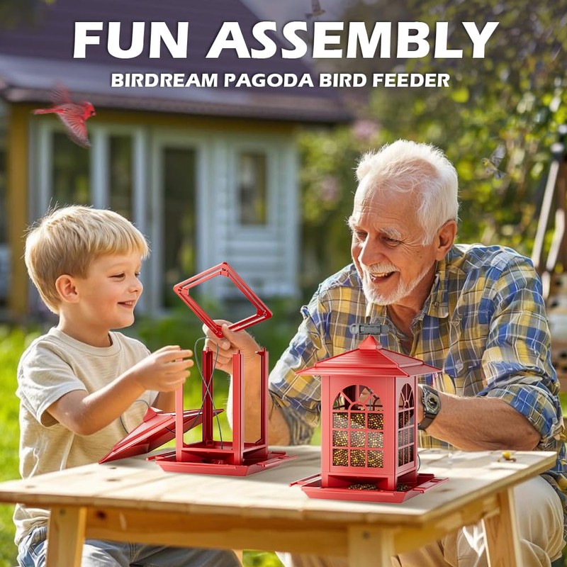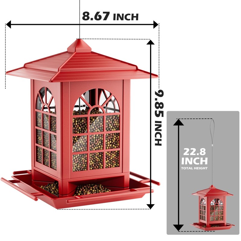 Birdream Bird Feeders for Outdoors Hanging, Classic Courtyard Design Fun Assembly 3.5LB Large Bird Feeder, Attracting Wild Birds Cardinals Goldfinches Sparrows - Red