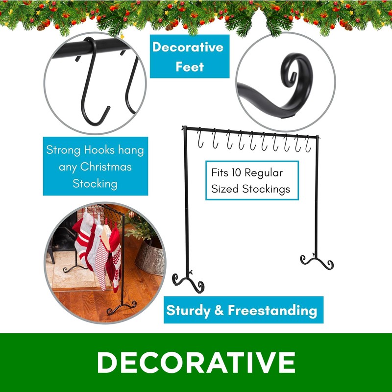 - No more worrying about where to hang all your family's stockings. This stand comes with 10 hooks, providing ample space to showcase each family member's stocking