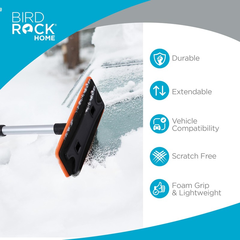 BIRDROCK HOME BIRDROCK HOME 36" Extendable Snow Pusher Brush & Detachable Ice Scraper for Cars | Aluminum Grip for Car, Truck, SUV | Safe on Auto Windshield & Windows | Wide Frost Remover for Semi & Small Vehicles