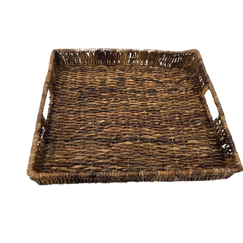 Birdrock Home Handwoven Abaca Serving Tray Set Woven 2Pc Set Integrated Handles
