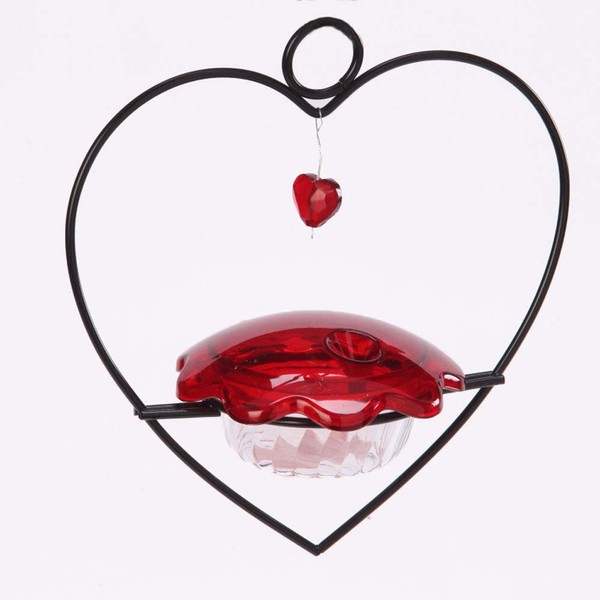 - Includes [1] Hummingbird Heart Feeder| Material: High-impact polycarbonate with brass hangers| Color: Clear Cup with Red Top, Red Heart| Measurements: 8 in. (L) x 4-1/2 in. (W) x 9 in. (H); Capacity 3 oz.