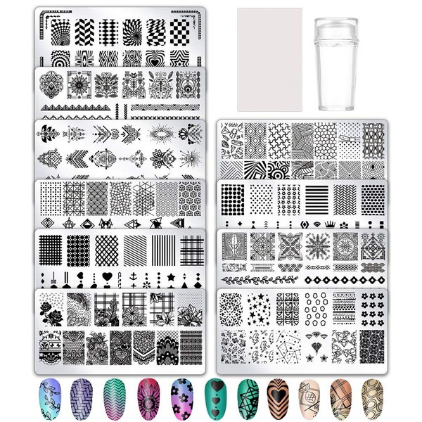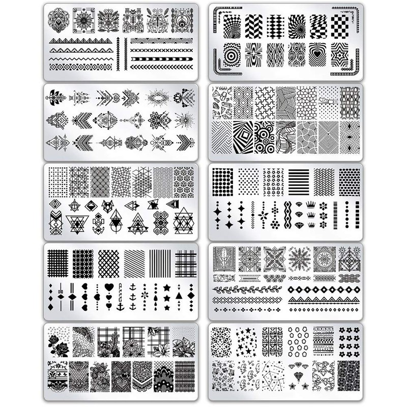 - ✿Various Patterns: The nail art plates design with geometric pattern like rectangle, triangle, irregular lines and Floral pattern, can offer you multiple choices, which can fully meet your daily or party nail art needs.