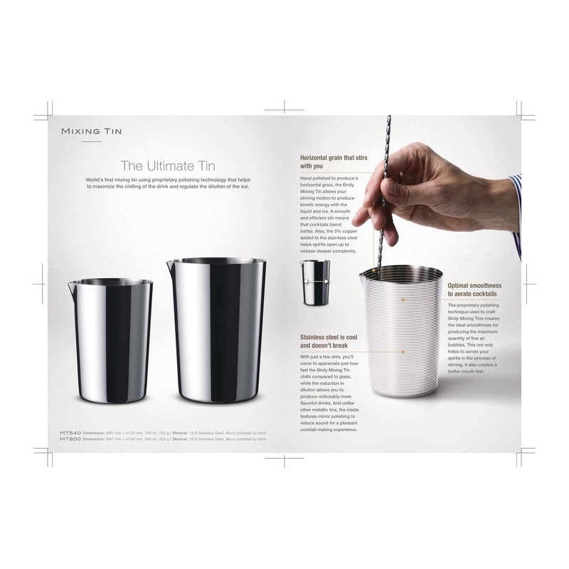 - Stainless steel mixing tins have better thermal conductivity and allow for less ice melting than conventional glassware
