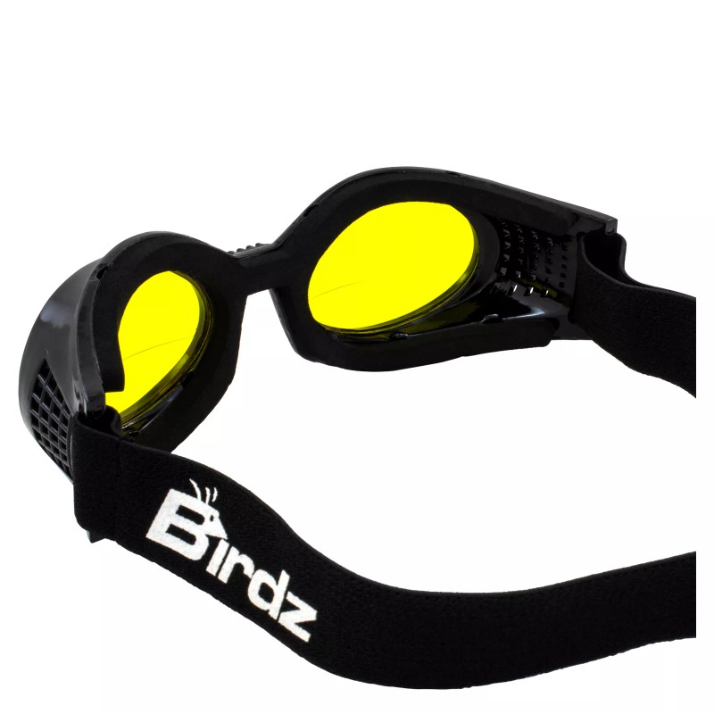 by Birdz Eyewear feature shatterproof polycarbonate lenses, a gloss black