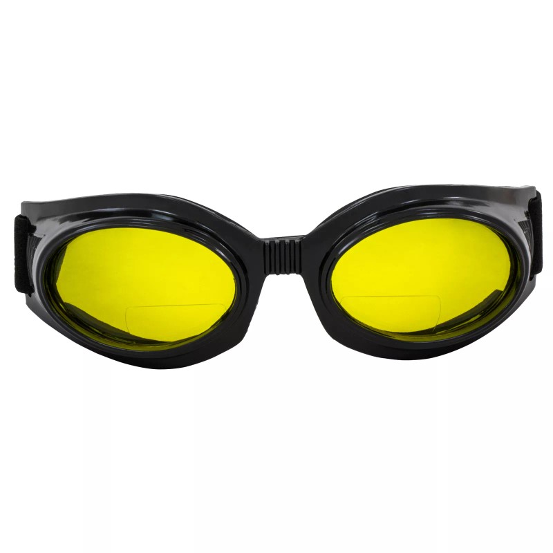 Birdz Eyewear KITE BIFOCAL ANTI FOG MOTORCYCLE GOGGLES BY BIRDZ - BLACK FRAME 1.0 YELLOW LENS