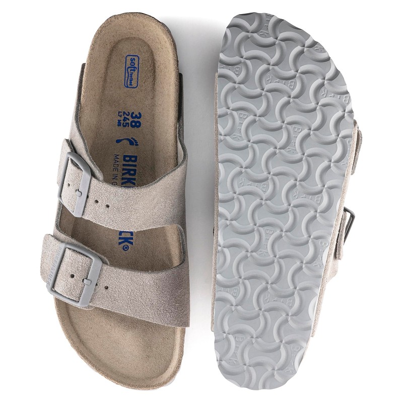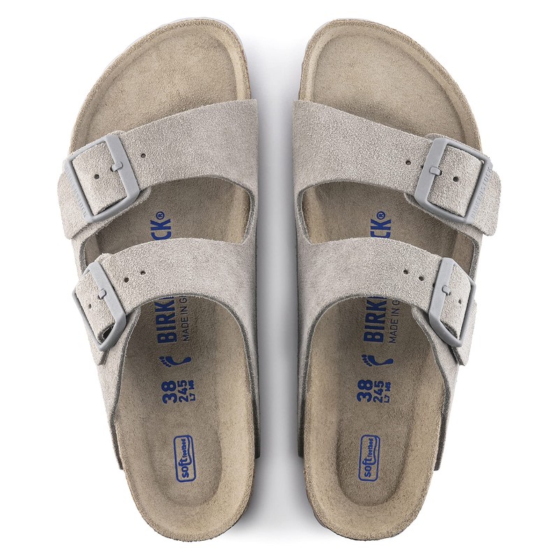 • An icon of timeless design and legendary comfort, the Arizona sandal has been defining style since 1973. Classic, velvety suede gives the laid-back look that every season, any style appeal. Complete with legendary BIRKENSTOCK design elements, like a contoured cork-latex footbed for the ultimate in support.