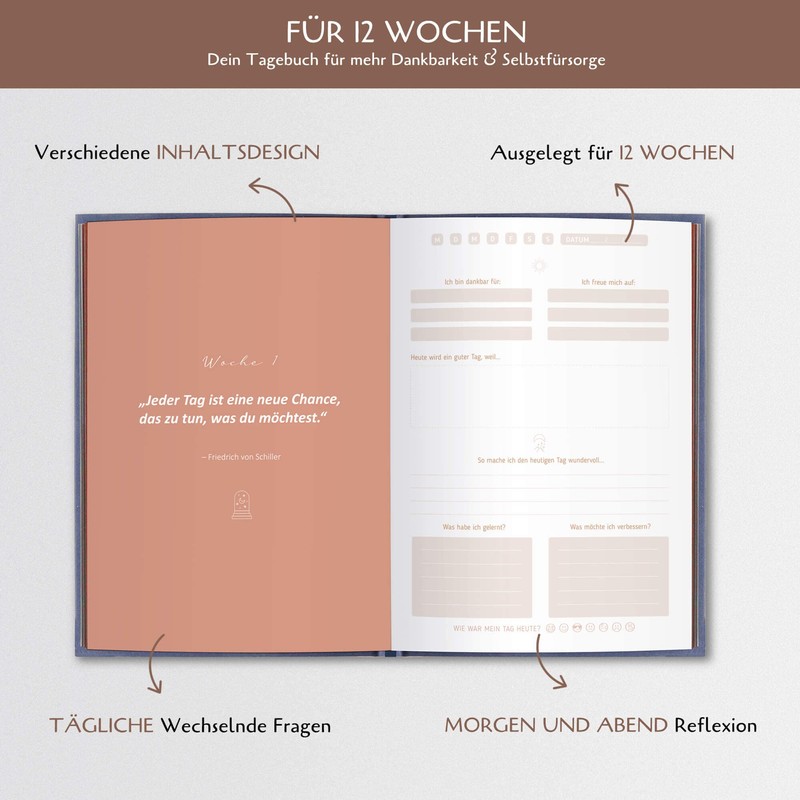 - ✅ 12 WEEKS OF THANK YOU - Small efforts, big results: focus - step by step - personality development made easy! Targeted self-reflection with stronger focus on self-improvement. Through this journal you can communicate with yourself. Then you will develop positive habits - such as gratitude, optimism, and daily self-love. Move positive in the right direction!