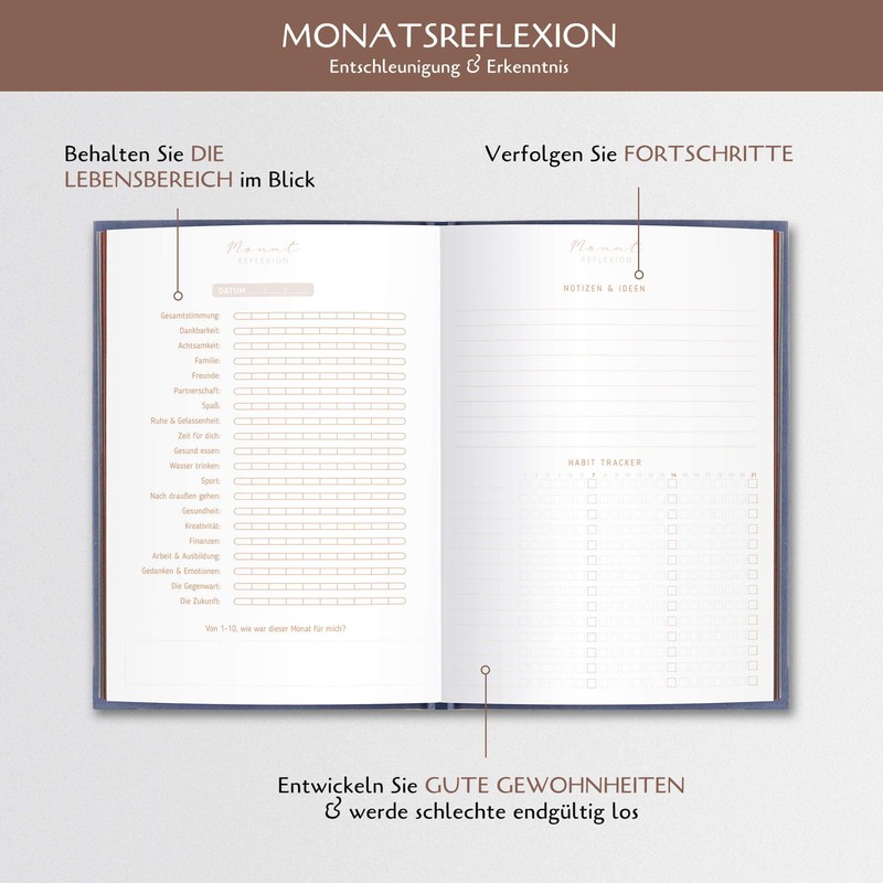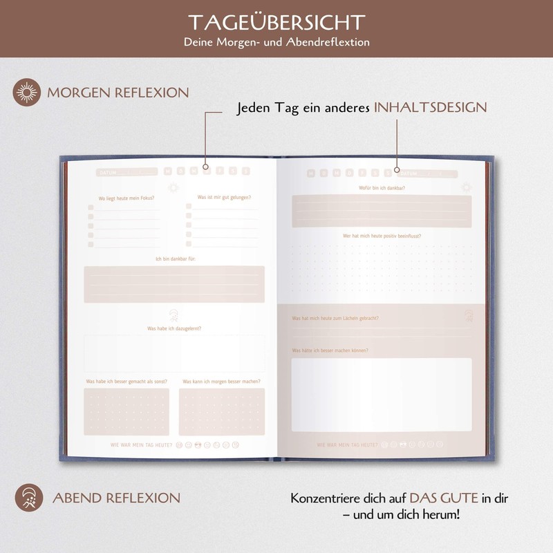 - More mindfulness and gratitude – by writing down your positive experiences daily, you quickly learn to live your life more consciously and be more positive in your everyday life. You will find that even the little things in everyday life can make you happy in the long term. Journal writing helps you become more self-reflective and focused - just a few minutes a day.