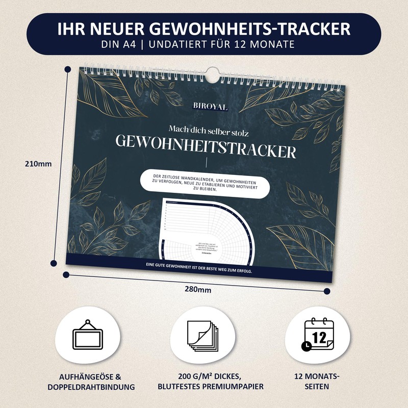 • High-quality paper and easy to use – this habit planner measures 280 x 210 mm and is made of thick 200 g/m² premium paper that does not bleed or deteriorate with daily use. Thanks to the spiral binding and hooks, the wall calendar is perfect for hanging, so you always have your habits in view. The paper gives you plenty of space to write