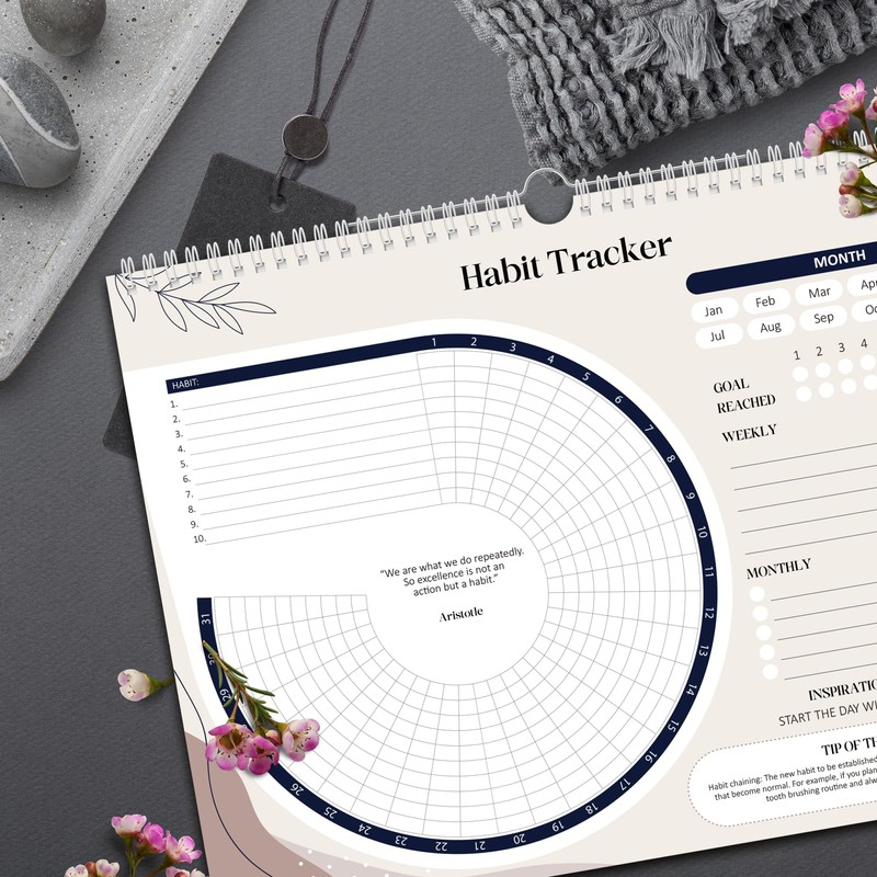 BIROYAL Habit Tracker Calendar - Inspirational Habit Journal with Spiral Binding - Daily Habit Tracker Journal and Goal Board - Motivational Goal Journal - Great Tool For Productivity And Workout