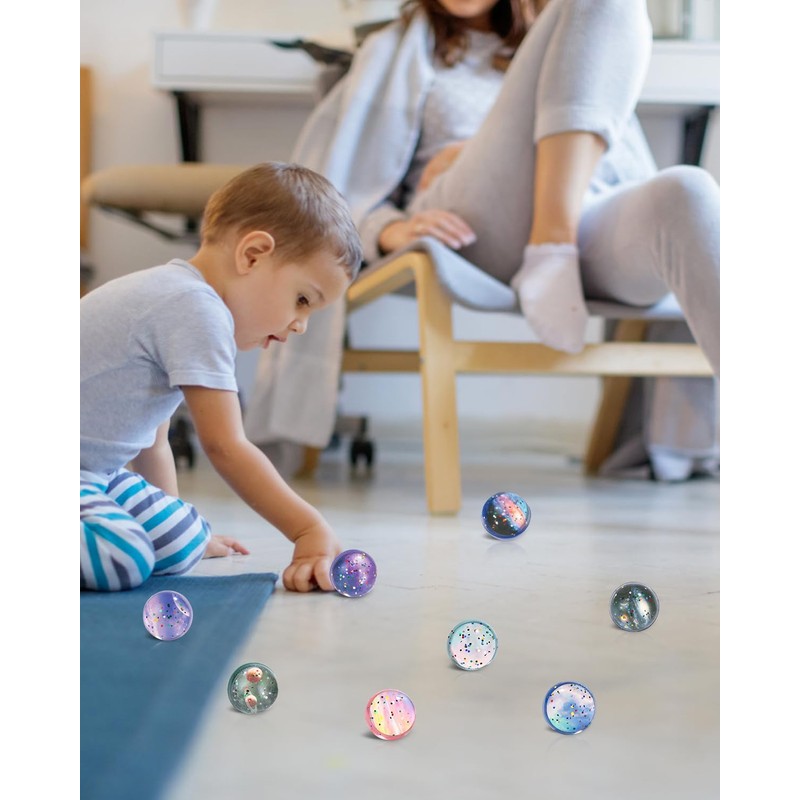 Birshe Pack of 25 Bouncy Balls for Children, Bright 30 mm Space Theme Bouncy Balls for Children, Glitter Rubber Balls, Bouncy Balls Set for Children's Birthday Party Favours, Random Colour for