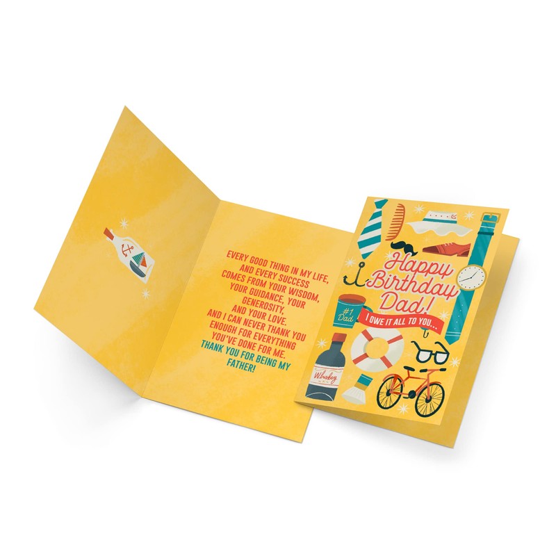 - Front Message: Happy Birthday Dad! I owe it all to you… Inside Message: Every good thing in my life, and every success Comes from your wisdom, your guidance, your generosity, And your love. And I can never thank you enough…
