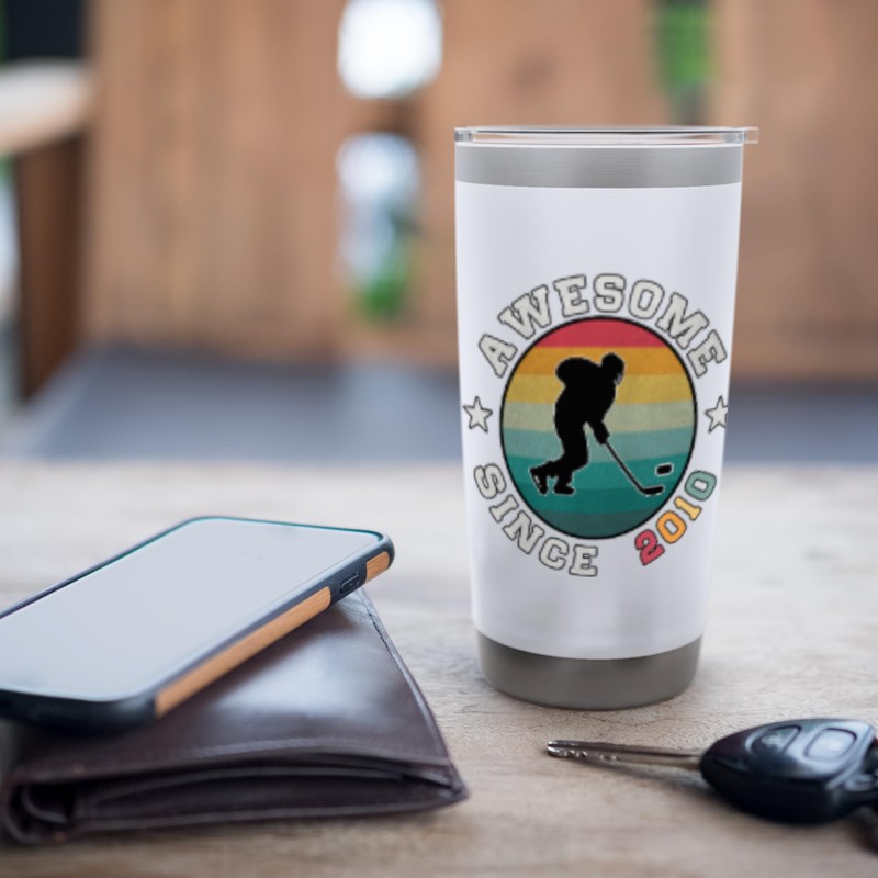 Birthday Hockey Lover Gift 15 years Old Awesome Since 2010 Stainless Steel Insulated Tumbler