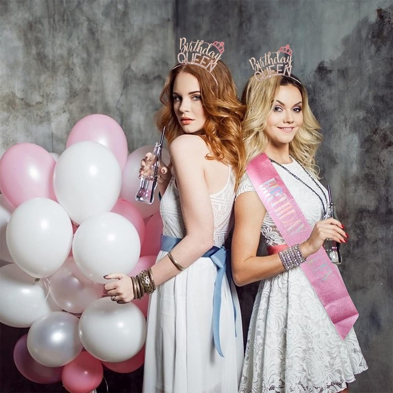 Birthday Queen Sash & Rhinestone Tiara Kit, Birthday Crown Sash, Birthday Crystal Tiara Crown Sash with Birthday Queen, 21st 30th 40th 50th 60th Birthday Gifts for Girls Women