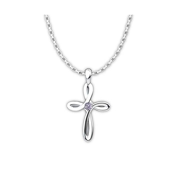 Birthstone Swirl Cross Sterling Silver Pendant - June, with 18 inches Sterling Silver Chain