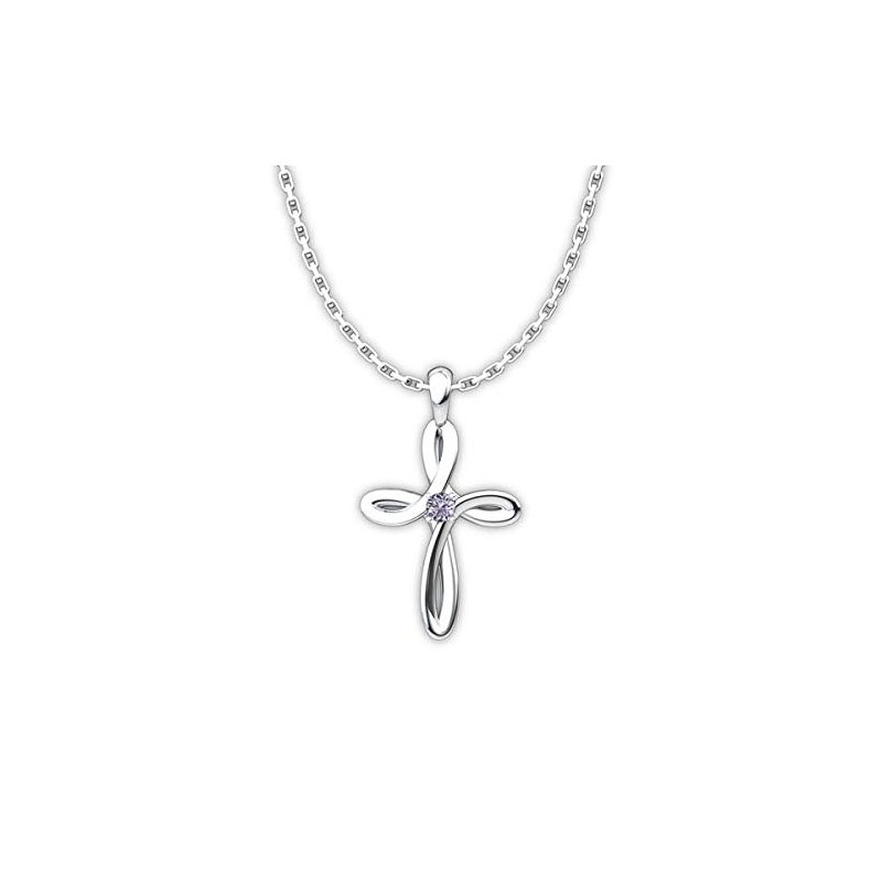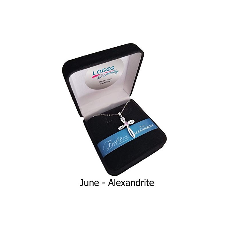 The simple yet stunning Swirl Cross Pendant comes with your choice of one of twelve lab colored birthstones - any from January to December. These sterling silver pendants include an 18” sterling silver chain with a spring ring clasp. The jewelry comes packaged in a lovely black velvet hinged gift box. Choose from: January - Garnet, February - Amethyst, March - Aquamarine, April - Cubic Zirconia, May - Emerald, June - Alexandrite, July - Ruby, August - Peridot, September - Sapphire, October - Pink Tourmaline, November - Citrine, December - Blue Topaz