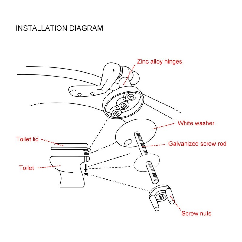 - Material: Nuestros bisagras del asiento del inodoro están hechos de material de aleación de zinc, punto de fusión bajo, buena fluidez, soldadura fácil
