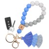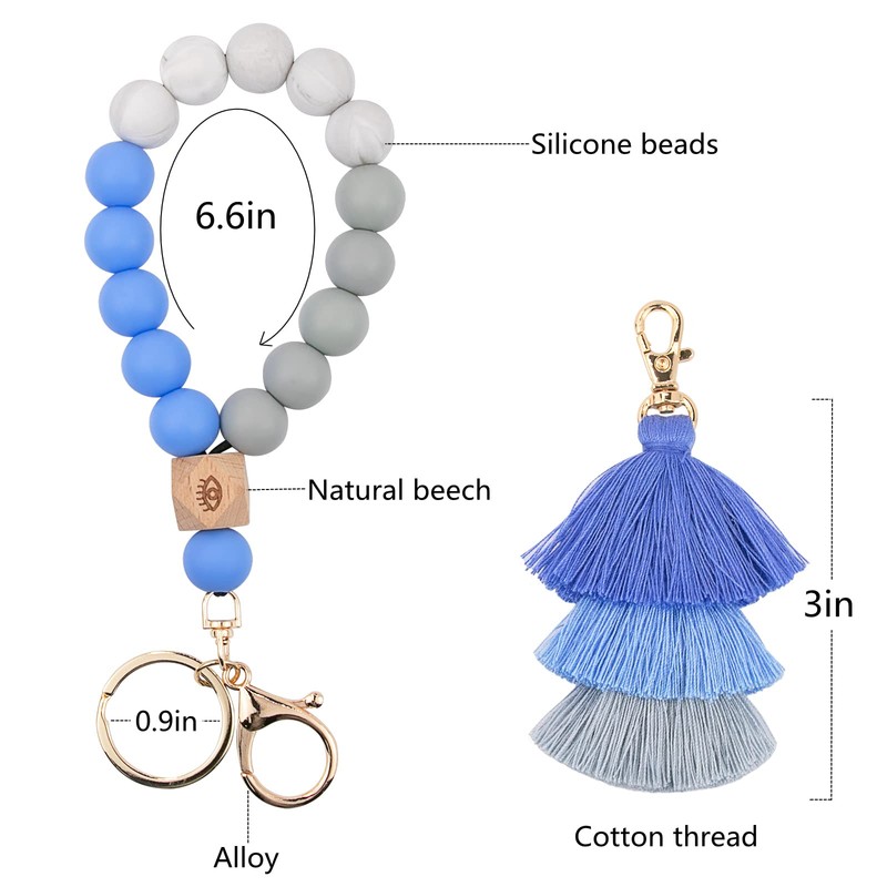 Bisanzoya Beaded Keychain with Tassel, Silicone Key Ring Bracelet, Cute Boho Car Key Chain Wristlet for Women (Beaded, Blue)