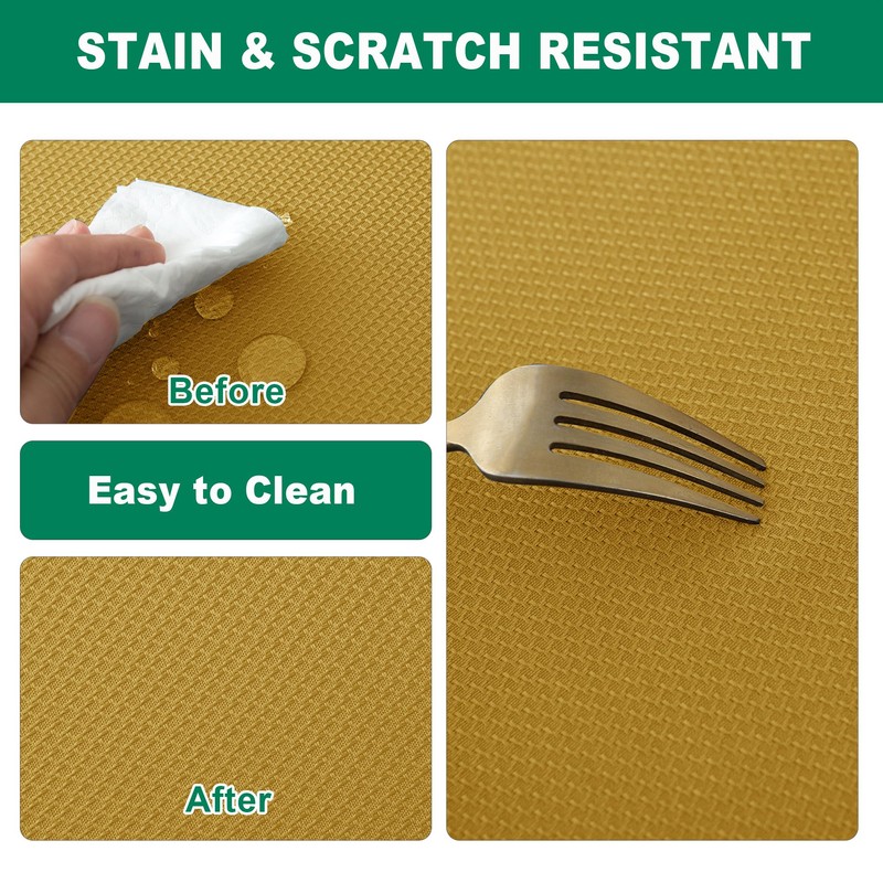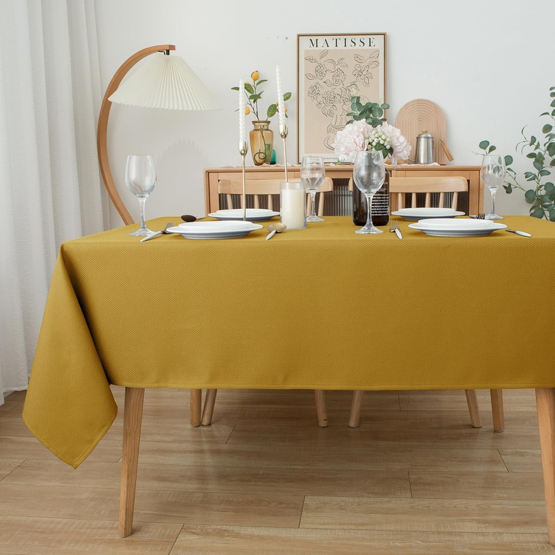 - Tablecloth fabric has excellent water resistant, liquids and spills will bead up --- easy to clean