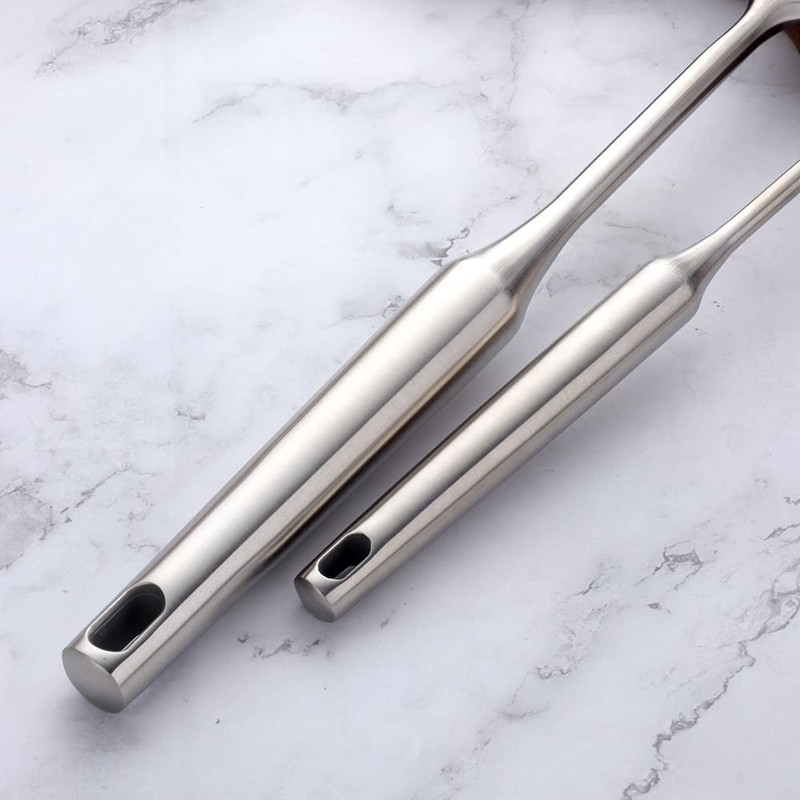 - 3. Ergonomic design: The thick handle is easier to hold in the hand to mash potatoes with more force and has a hanging hole for easy storage in the kitchen cabinet.