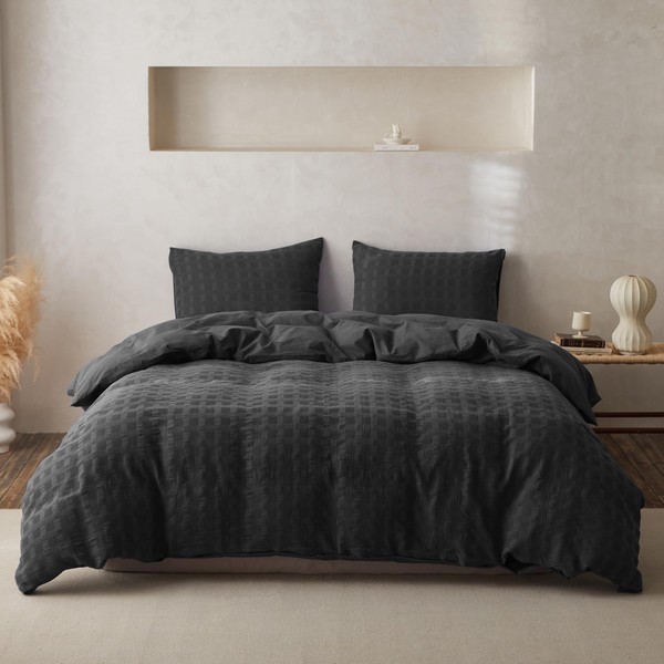 - 【Waffle Weave Design】Classic yet stylish geometric waffle design on the surface, and solid color percale on its reverse. The reversible design can make every day a new day. 4 inner corner ties to secure the duvet and minimize shifting.