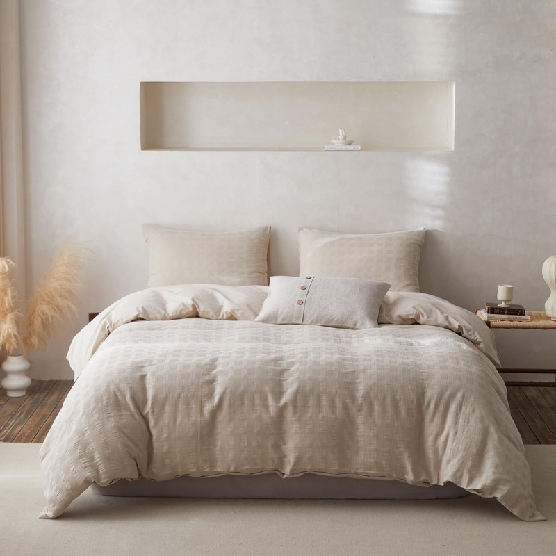 - 【Waffle Weave Design】Classic yet stylish geometric waffle design on the surface, and solid color percale on its reverse. The reversible design can make every day a new day. 4 inner corner ties to secure the duvet and minimize shifting.