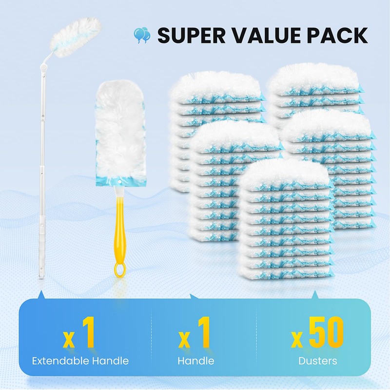 Keep your home spotless with the Bisenkud Heavy Duty Duster Kit. Designed for Brand-Name duster users seeking affordability without compromise, this bundle includes 50 microfiber refills, a 3ft extendable handle for high surfaces, and a short handle for everyday use.