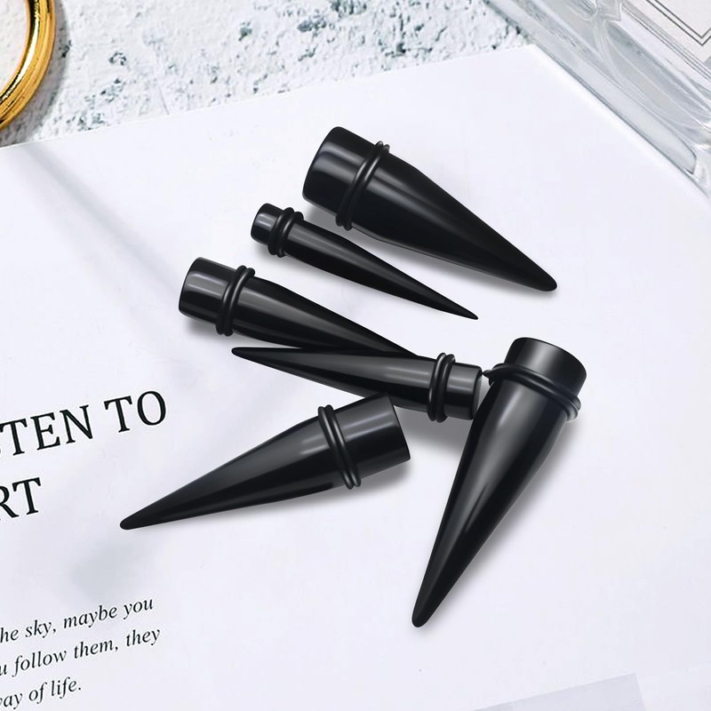 Bishilin 2PCS Acrylic Gauges Tunnels, 1 Inch Dangle Gauges for Ears Black 25MM Ear Stretcher Tunnels Cone Shape