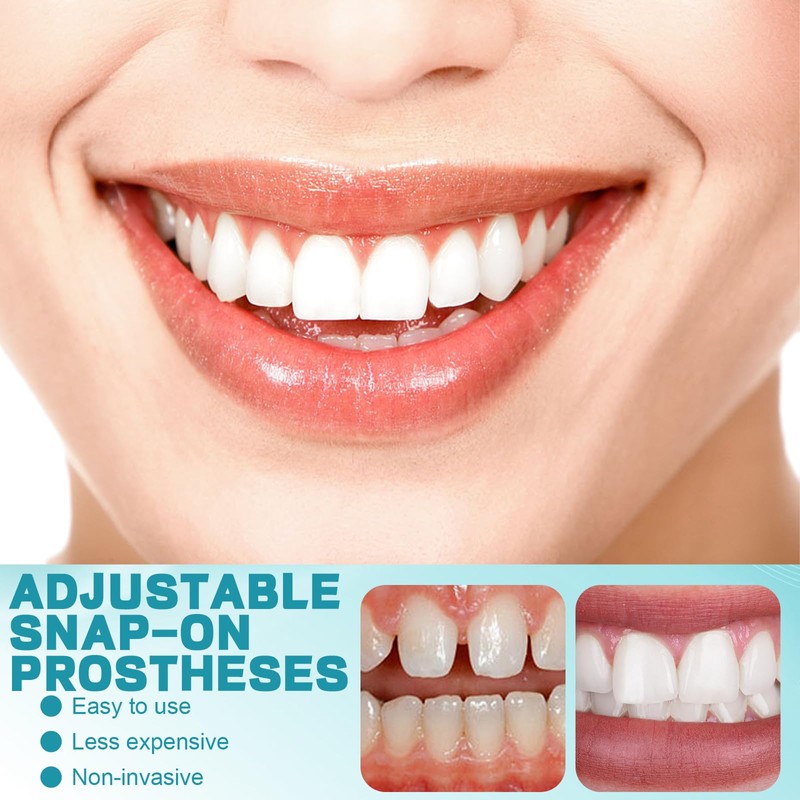 Veneers features an adjustable snap-on design that fits mouths of different sizes, can be firmly attached to teeth, and feels comfortable after wearing.