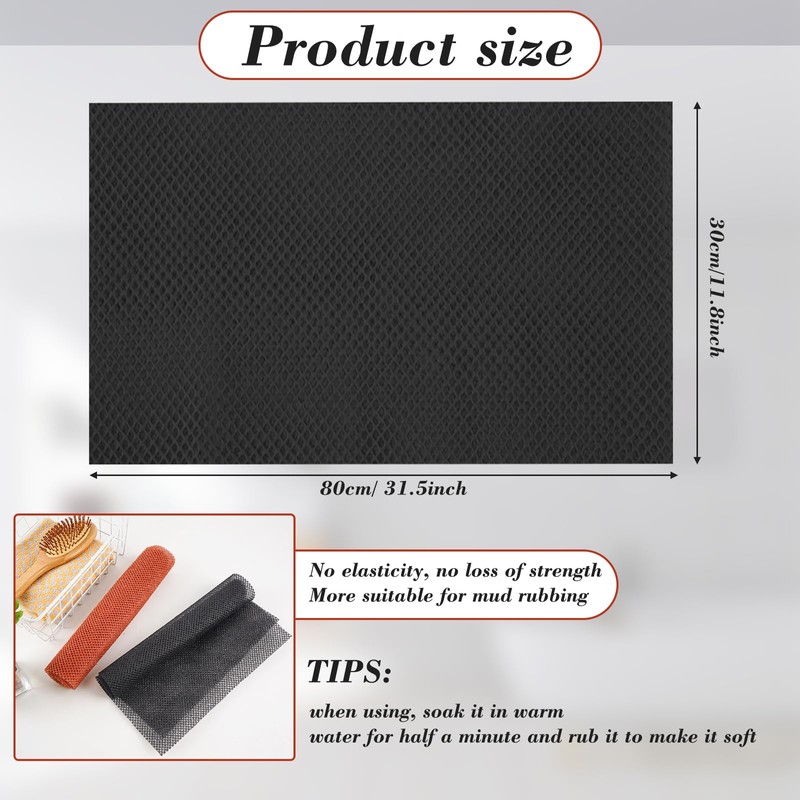 - Good Rebound and Stretchability: The width of net sponge is about 11.8 inches (30 cm) and the length is 31.4 inches (80 cm), with good rebound and stretchability. You can stretch exfoliating net as needed to ensure that it can wash every corner of the body, including the back, arms and feet.