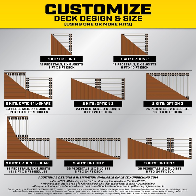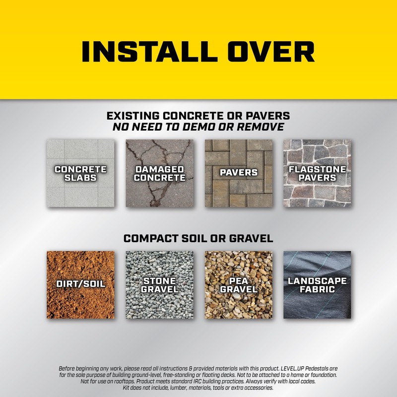 - Replaces Level.Up Adjustable Pedestal to provide low height joist support and eliminate concrete footers