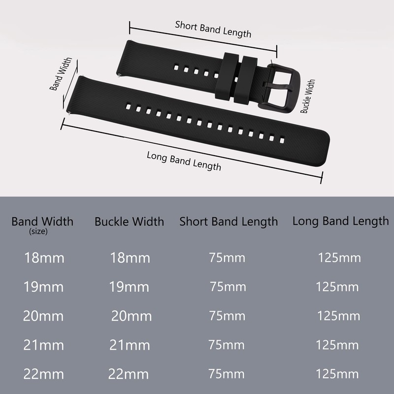- Band Length: 75mm and 125mm. Many holes on the strap, you can adjust the best length that fit for your wrist perfectly. Please measure the watch lug width before ordering. Size=Band width=Watch lug width